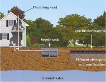 Septic systems cannot dispose of all the material that enters the system. Solids that are not broken down by bacteria begin to accumulate in the septic tank and eventually need to be removed. The most common reason for system failure is not having these solids removed on a regular basis. Seepage from inadequate or failing septic systems can contaminate both ground and surface waters. Malfunctioning septic systems are one of the leading causes of groundwater pollution.